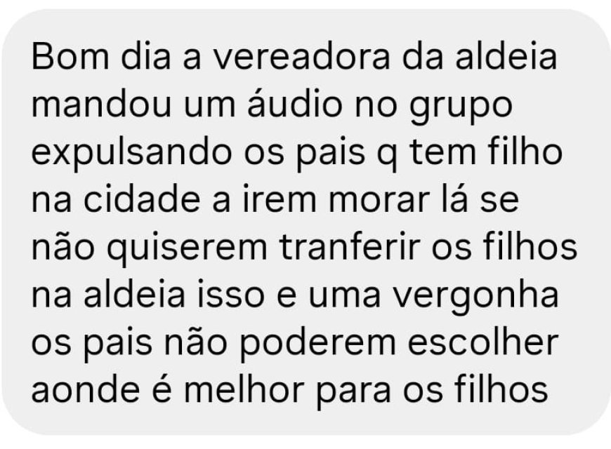 De acordo com a vereadora, o prefeito destacou que o município conta com escola de qualidade apta a atender os estudantes. No entanto, ela ressaltou que, apesar da estrutura oferecida pelo poder público, os pais têm o direito de escolher onde desejam matricular os filhos.